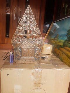 lampu gantung eropa 3 cabang antik kap lukis material kuningan padat solid berat kap kristal susu lukis dan kayu wood layak untuk dikoleksi cantik untuk display teras maupun ruang tamu minus 1kap bekas leman wa.08112071797